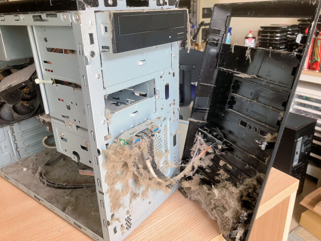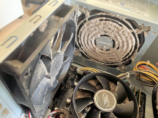 さらに、ケース内部には長年のホコリがびっしりと詰まっており、空気の流れを完全に遮断していました。